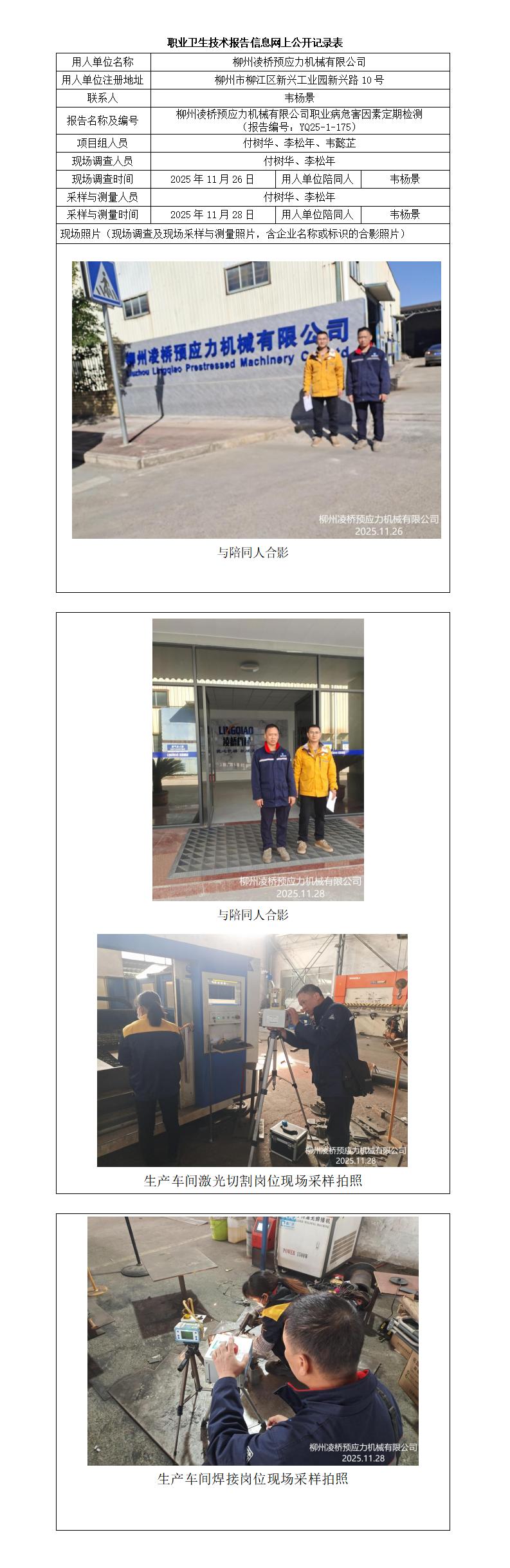 柳州凌橋預(yù)應(yīng)力機(jī)械有限公司職業(yè)病危害因素定期檢測(cè) (報(bào)告編號(hào):YQ25-1-175)