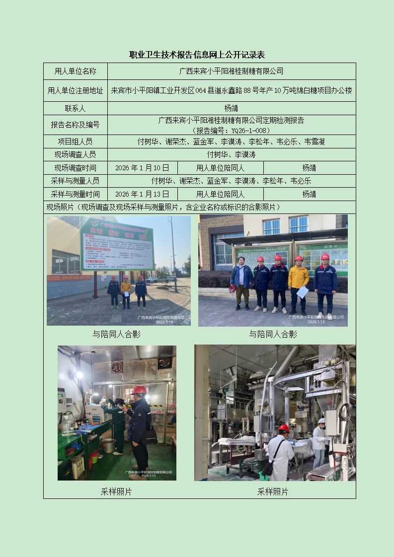 廣西來(lái)賓小平陽(yáng)湘桂制糖有限公司定期檢測(cè)信息公開