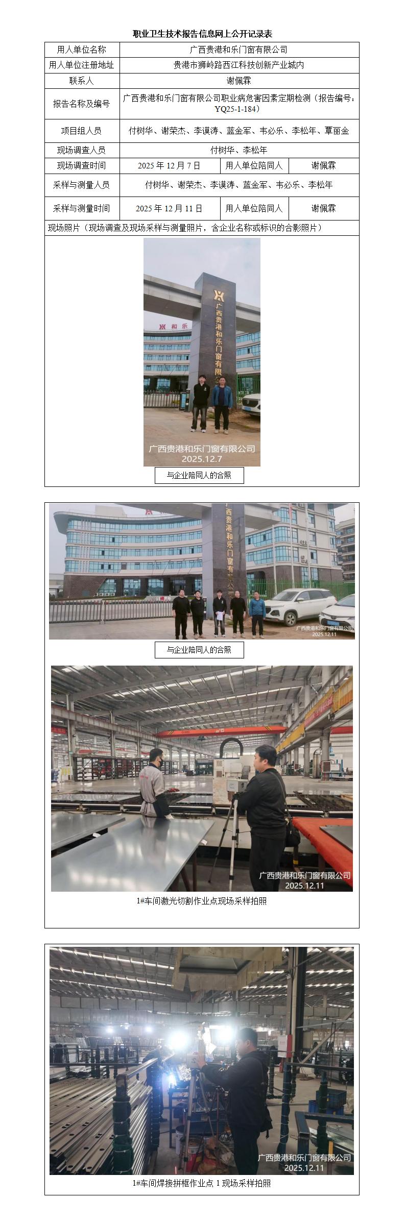 廣西貴港和樂門窗有限公司職業(yè)病危害因素定期檢測