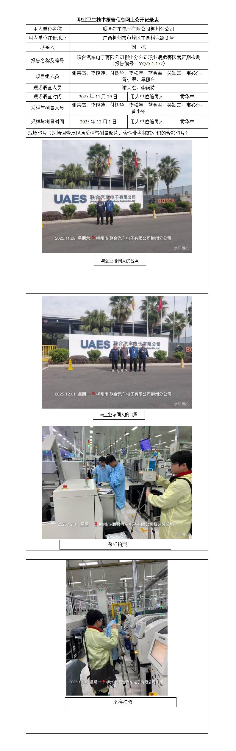 聯(lián)合汽車電子有限公司柳州分公司職業(yè)病危害因素定期檢測