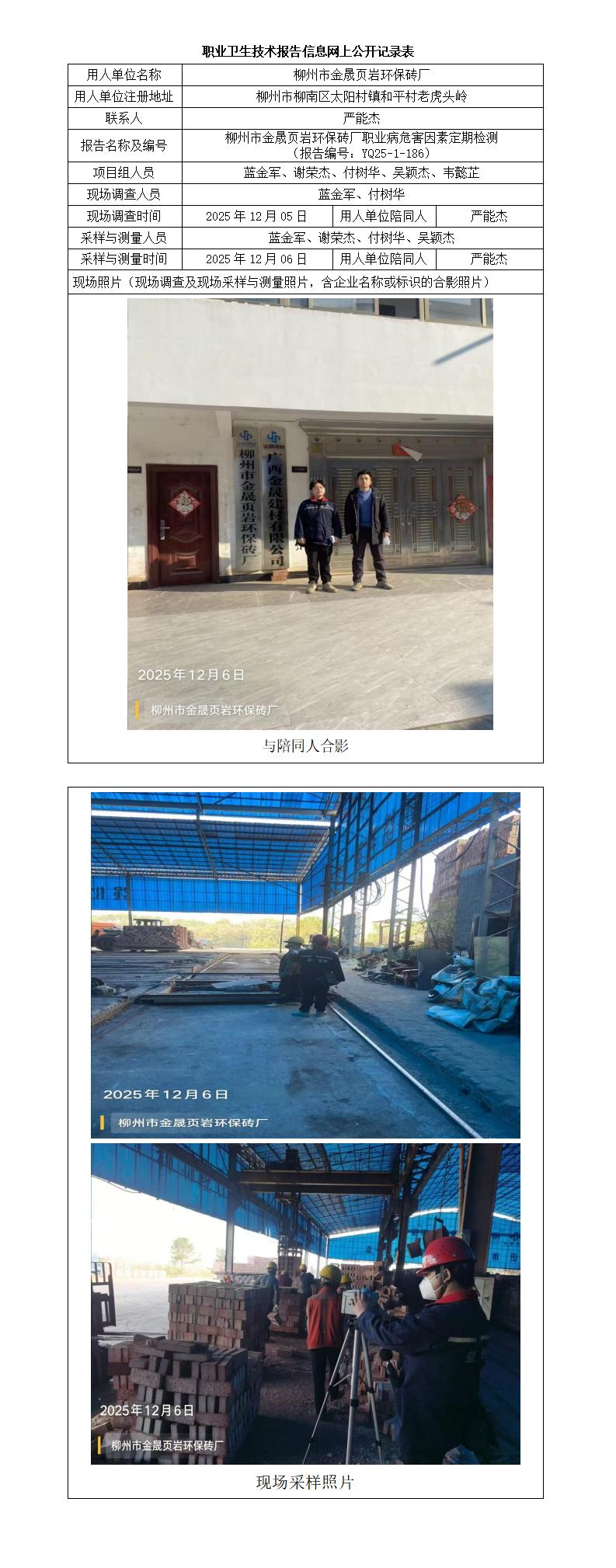 柳州市金晟頁(yè)巖環(huán)保磚廠職業(yè)病危害因素定期檢測(cè) (報(bào)告編號(hào):YQ25-1-186)
