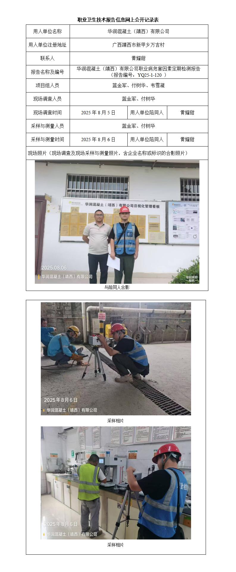 華潤混凝土(靖西)有限公司職業(yè)病危害因素定期檢測(cè)報(bào)告信息網(wǎng)上公開記錄表