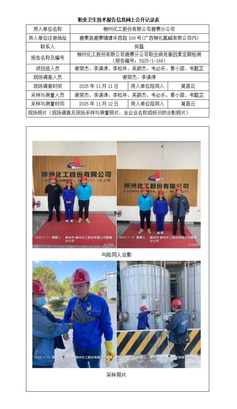 柳州化工股份有限公司鹿寨分公司職業(yè)病危害因素定期檢測(cè) (報(bào)告編號(hào):YQ25-1-166)