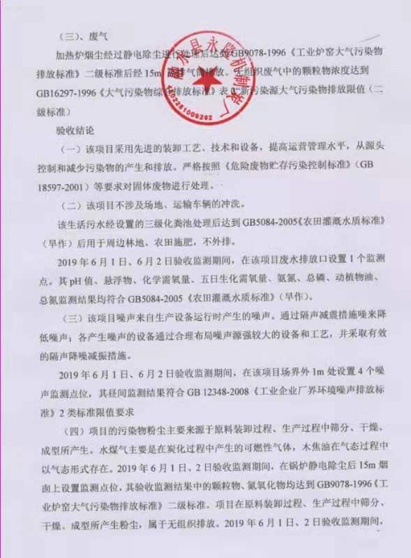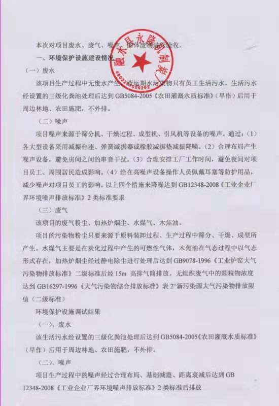 根據(jù)《關(guān)于發(fā)布<建設(shè)項(xiàng)目竣工環(huán)境保護(hù)驗(yàn)收暫行辦法>的公告》(國(guó)環(huán)規(guī)環(huán)評(píng)〔2017〕4號(hào))要求,除按照國(guó)家規(guī)定需要保密的情形外,建設(shè)項(xiàng)目單位應(yīng)依法向社會(huì)公示驗(yàn)收?qǐng)?bào)告。為此,融水縣永樂(lè)鎮(zhèn)永隆機(jī)制炭廠將《融水縣永樂(lè)鎮(zhèn)永隆機(jī)制炭廠年產(chǎn)機(jī)制炭300t建設(shè)項(xiàng)目(廢氣、廢水、噪聲)竣工環(huán)境保護(hù)驗(yàn)收監(jiān)測(cè)報(bào)告表》及項(xiàng)目驗(yàn)收意見(jiàn)進(jìn)行公示公開(kāi),公開(kāi)內(nèi)容為報(bào)告全文本信息。