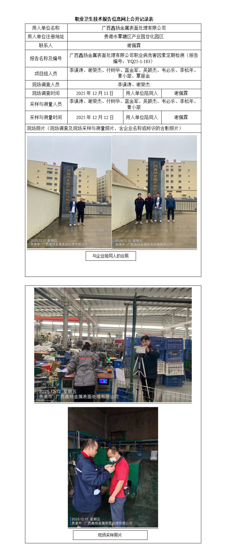 廣西鑫揚金屬表面處理有限公司職業(yè)病危害因素定期檢測
