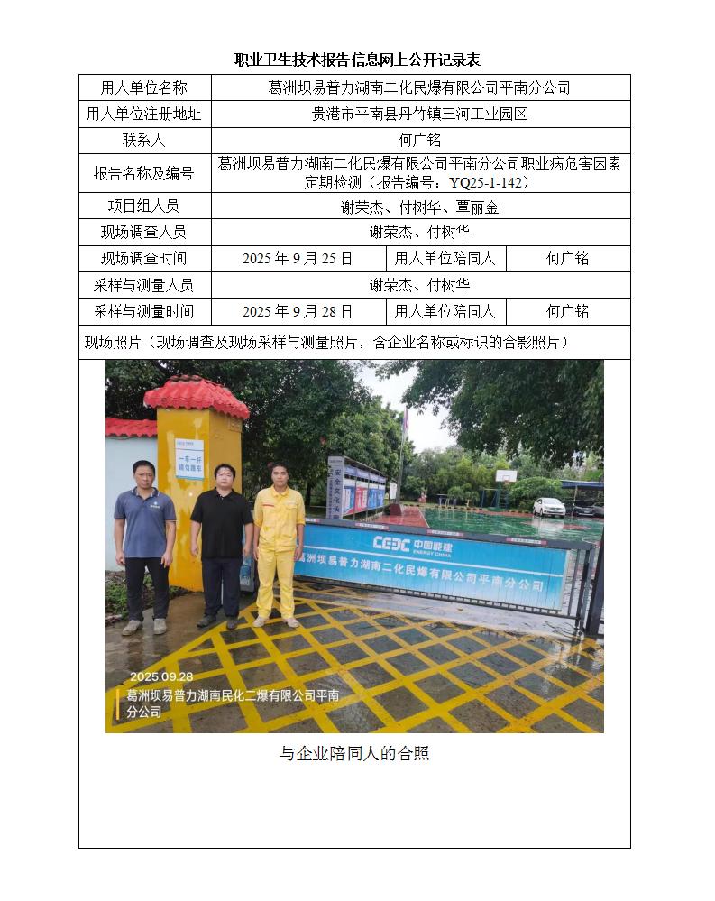 葛洲壩易普力湖南二化民爆有限公司平南分公司職業(yè)病危害因素定期檢測